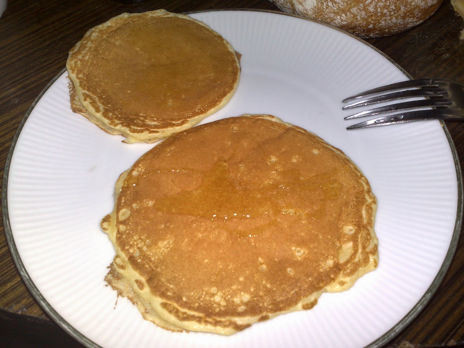 就這樣,再一次要翻我的第二個pancake時,那個微微焦黃、淡褐色澤的、熟悉的小圓煎餅出現在我眼前時,我真的就是開心的喊出 Yes!