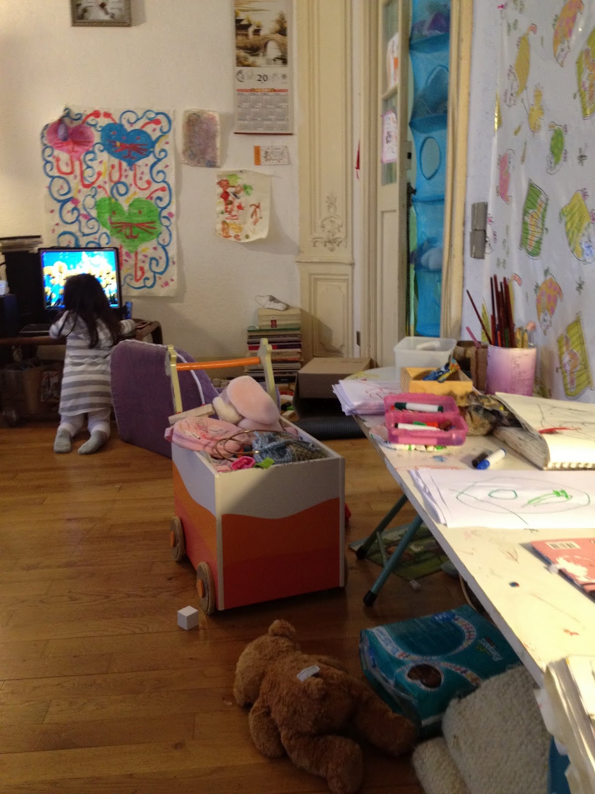 最近讀到,看太多電視的幼兒,明顯會有注意力不專注的影響。具體的表現有:找不到身邊的物品。這讓我十分心驚。因為八寶正是那種東西就在她附近,我們給她指引:在哪個方向、什麼東西的旁邊、什麼顏色,通常她都是無法找到。。。我原本覺得,也許是這個年紀發展的關係,但讀到這篇文章之後,完全的嚇到,覺得是看影像害了她。。。