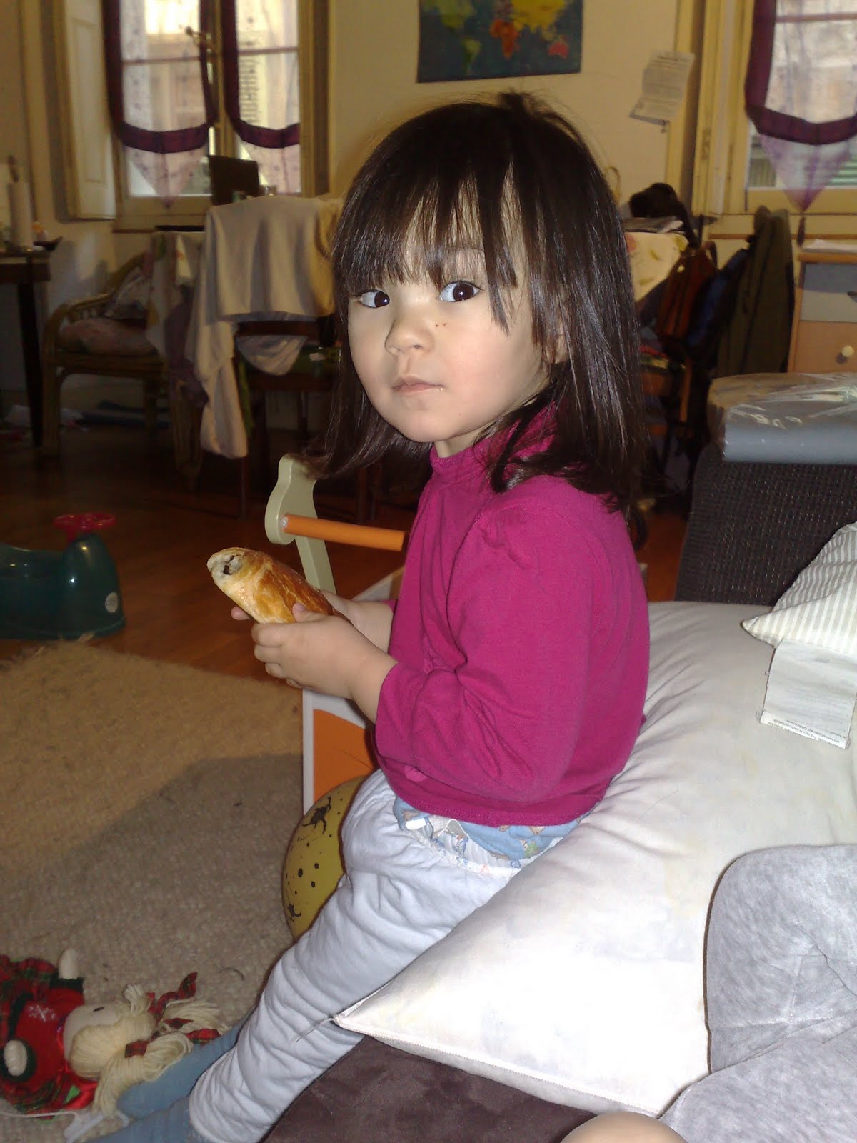 26個月左右,從台灣回法國之後,突然在以前只要經過就一定要玩、常常要坐不止一次的旋轉木馬上,哭了起來。我到現在還無法理解是發生了什麼事,也無從了解她到底害怕什麼;只知道八寶說她害怕,而且從此再也不玩旋轉木馬了。到現在,都沒有改變心意。